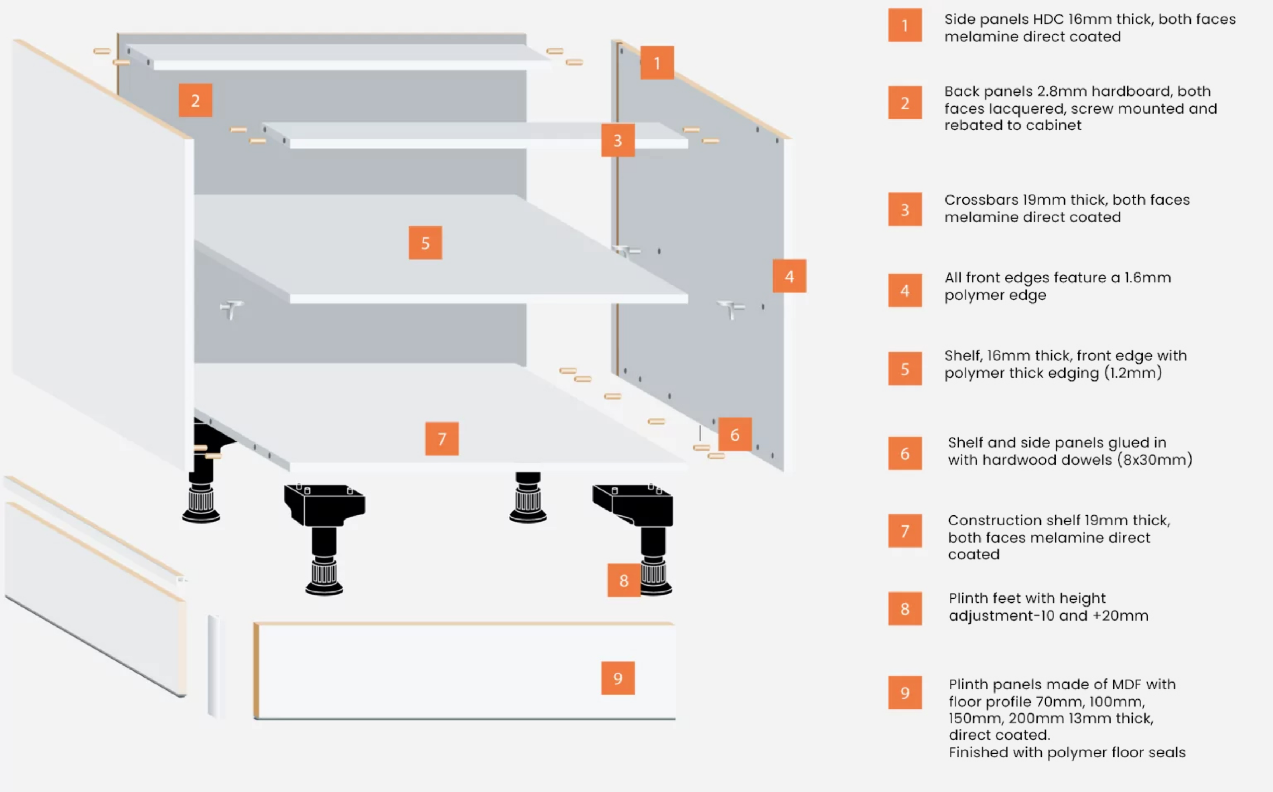 Exploded view of rigid cabinet