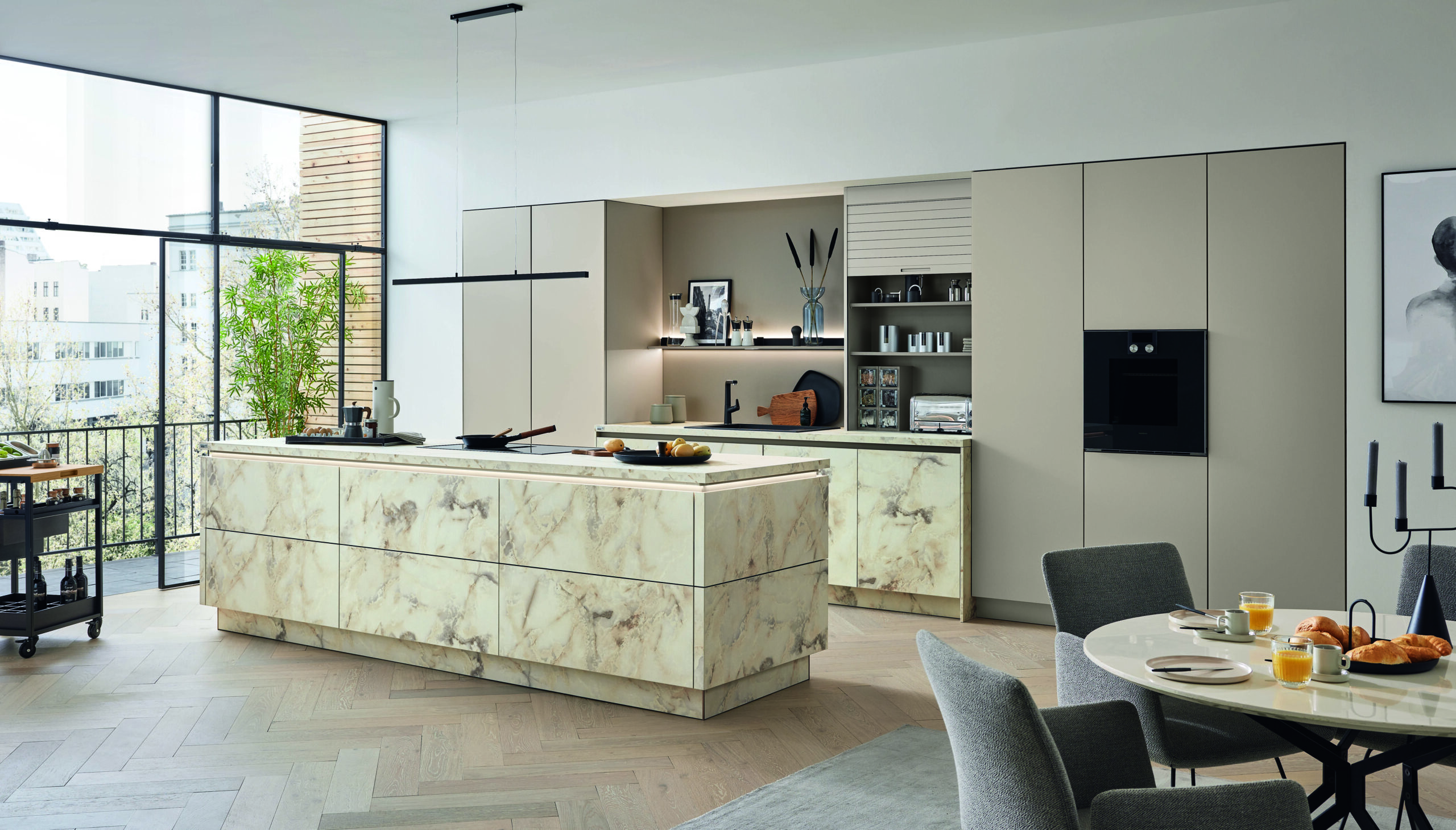 Urban-inspired concrete textures for contemporary kitchen design.